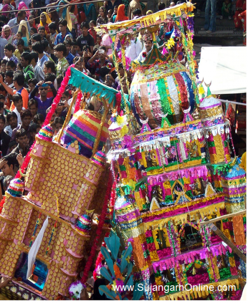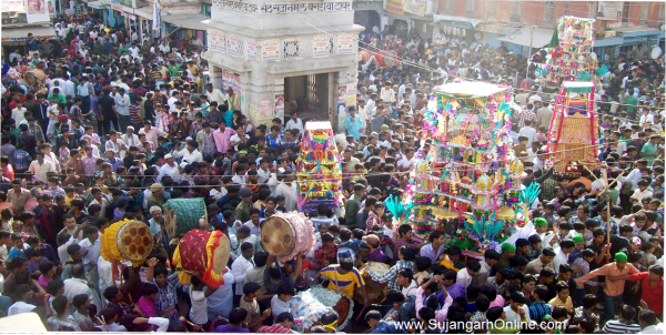 अखाड़ा निवारिया, अखाड़ा तेलियान, अखाड़ा काजियान व अखाड़ा बिसायतियान से ताजियों का जुलूस कस्बे के मुख्य मार्गों से होते हुए घंटाघर पंहूचा। जहां से जुलूस गांधी चौक, लाडनूं बस स्टैण्ड होते हुए ईदगाह स्थित कर्बला शरीफ पंहूचा। जहां ताजियों को सुपुर्दे खाक किया गया। चार बड़े ताजियों के साथ नन्हे कलाकारों द्वारा बनाये गये ताजियों में इरफान व साथियों द्वारा निर्मित बिस्कुतो का ताजिया आकर्षण का केन्द्र रहा। खेल अखाड़ों में कलाकारों व कलन्दरों द्वारा हाईदौस, डांडपट्टा, लकड़ी व कुरूंजों के करतब आश्चर्यचकित करने वाले थे। लाडनूं बस स्टैण्ड से पहले मौलानी परिवार द्वारा छबील एवं शरबत का आयोजन किया गया। जिसमें मौलानी परिवार के मो. इकबाल मौलानी, असलम मौलानी सहित पूरे परिवार ने अपना योगदान दिया। इस अवसर पर ईस्लामी युवा जमाअत के अबदूल अजीज, मो. शफी, इकबाल, रोशन अली, लाल मोहम्मद सहित अनेक कार्यकर्ताकाओं ने अपना सहयोग दिया। गांधी चौक में पूर्व प्रधान पूसाराम गोदारा, शहर ब्लॉक कांग्रेस अध्यक्ष प्रदीप तोदी, नगर अध्यक्ष रामावतार शर्मा, राधेश्याम अग्रवाल, इदरीश गौरी, पार्षद बाबूलाल कुलदीप, महबूब व्यापारी, लालचन्द शर्मा, बंटी लाखन तथा भाजपा की ओर से पूर्व मंत्री खेमाराम मेघवाल, बुद्धिप्रकाश सोनी, पार्षद पवन चितलांगिया, भाजयुमो अध्यक्ष हेमराज माली, सन्तोष बेडिय़ा, युसूफ गौरी, प्रहलाद जाखड़, नीलम जैन ने ताजियेदारों को साफा बांधकर स्वागत किया।