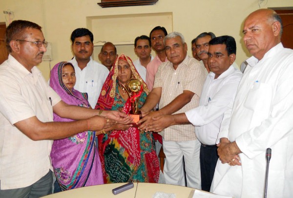 पंचायत समिति परिसर में प्रधान नानीदेवी गोदारा का अभिनन्दन