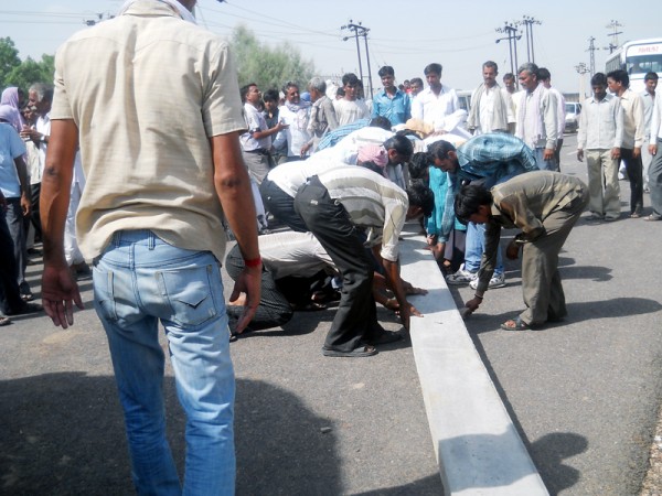 तेहनदेसर में 132 जीएसएस के सामने जाम लगाते हुए किसान