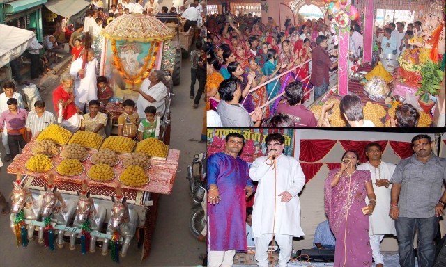 गणेश चतुर्थी के दिन बुधवार सुबह 5 बजे गणेश जी का दुग्धाभिषेक प्रारम्भ किया गया, जो दोपहर 11.15 तक अनेक गणेश भक्तों ने दुग्धाभिषेक कर पुण्य लाभ कमाया। दुग्धाभिषेक के पश्चात भगवान गणेश जी के 51 किलो केक का भोग लगाया गया, जिसका महाप्रसाद वितरण दिनभर होता रहा। गणेश महोत्सव का सफल बनाने में नन्दकिशोर जांगीड़, गोपाल प्रजापत, दीपक भोजक, प्रहलाद प्रजापत, कानाराम स्वामी, हनुमान कठातला, अशोक चोटिया, सुरेश अरोड़ा, भागीरथ करवा सहित अनेक गणेश भक्तों का सहयोग रहा। इसी प्रकार अगुणा बाजार स्थित लक्ष्मीनाथ मन्दिर में गणेश महोत्सव के तहत प्रसाद स्वरूप 31 सवामणी के मोदक व लड्डू का भोग लगाया गया। बुधवार को बऊधाम के महन्त रतिनाथ जी महाराज ने गणेश जी व लक्ष्मीनाथ जी के धोक लगाई व पूजा-अर्चना की। रतिनाथ जी महाराज का मन्दिर के पुजारी व गणेश महोत्सव कार्यक्रम के संयोजक नरेन्द्र भारती, चण्डीप्रसाद मिश्र, आनन्दमंगल मिश्र ने माला पहनाकर स्वागत किया व महाराज का आर्शीवाद लिया। इससे पूर्व मंगलवार रात्री को आयोजित भजन संध्या में फतेहपुर पवन कुमार एण्ड पार्टी ने भजनों की प्रस्तुतियां दी।