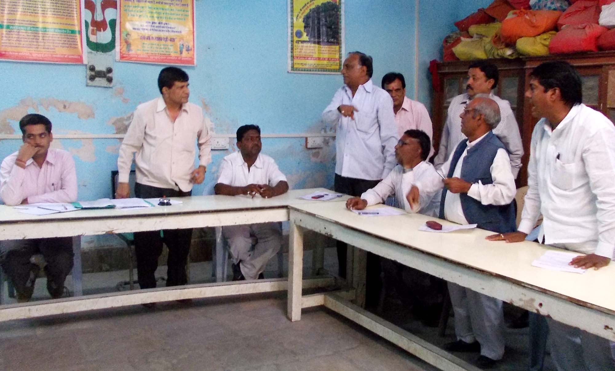 स्थानीय नगरपालिका कार्यालय में नगरपालिका अध्यक्ष डा. विजयराज शर्मा की अध्यक्षता में आयोजित बैठक में प्रशासन शहरों के संग अभियान, विकास कार्यों सहित अनेक मुद्दों पर चर्चा हुई। बैठक में शास्त्री प्याऊ से बस स्टैण्ड तक की ब्लॉक सड़क दो टुकड़ों में बनवाने, शास्त्री प्याऊ से जीवराज कोठारी के मकान तक सीसी रोड़, गांधी बालिका स्कूल से डा. मोहन जैन क्लिनिक तक सीसी रोड़ बनवाने का प्रस्ताव सर्वसम्मति से पास किया गया। रेलवे माल गोदाम के पीछे से गंदे पानी की निकासी के लिए पाईप लाईन के लिए प्रतिपक्ष नेता रामनारायण प्रजापत व अन्य कांग्रेस पार्षदों ने राज्य सरकार से पाईप दिलवाने का आश्वासन दिया। पार्षद मनीष गोठडिय़ा ने मुख्य बाजारों में लगे विद्युत पोलों के मर्करी लाईट लगाने का प्रस्ताव पेश किया, जिसे सर्वसम्मति से पारित किया गया। पार्षद पवन महेश्वरी, बाबूलाल कुलदीप, ओमप्रकाश ऑपरेटर, अन्नाराम डाबरिया ने एक स्वर में नया बाजार से बगडिय़ा मन्दिर तक सीसी सड़क बनवाने की मांग की।