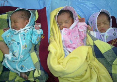 सोमवार को दोपहर में 27 वर्षीय राजूदेवी ने तीन लड़कियों को जन्म दिया। प्रसूता की सास कमलादेवी ने बताया कि बच्चियों का वजन सामान्य से कम होने के कारण उन्हे गहन चिकित्सा इकाई में रखने के चलते उन्हें सीकर रैफर कर दिया गया है।