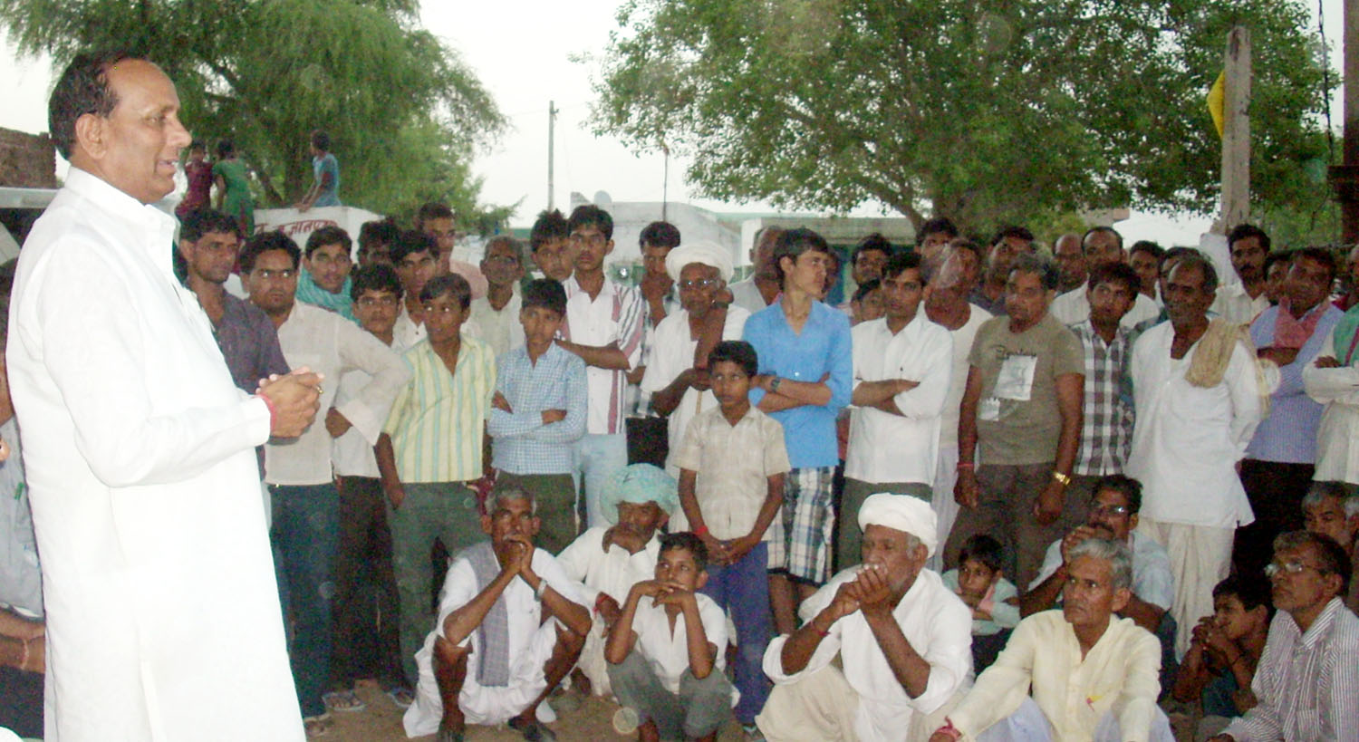 पूर्व मुख्यमंत्री एवं प्रदेश भाजपा अध्यक्ष वसुन्धरा राजे की आगामी 11 जुन को प्रस्तावित सुराज संकल्प यात्रा की तैयारियों के तहत पूर्व मंत्री खेमाराम मेघवाल ने तहसील के डूंगर बालाजी, डूंगरास आथुणा, गोपालपुरा, रूपेली, बालेरां, हेमासर, कोडासर जाटान, कोडासर बीदावतान, चरला, सारंगसर, लुहारा, भोमपुरा, बम्बू, बैरासर, सोनियासर, रेड़ा, साजनसर, गिरवरसर, साण्डवा, मानपुरा, ढिग़ारिया पालास, घण्टियाल बड़ी व छोटी, छूंकर, बैनाथा में जनसम्पर्क व आम सभा कर ग्रामिणों को सुराज संकल्प यात्रा की आम सभा में आने के लिए पीले चावल देकर न्यौता देते हुए कहा कि कांग्र्रेस के कुराज से दु:खी प्रदेश की जनता वसुन्धरा के नेतृत्व में सुराज लायेगी।