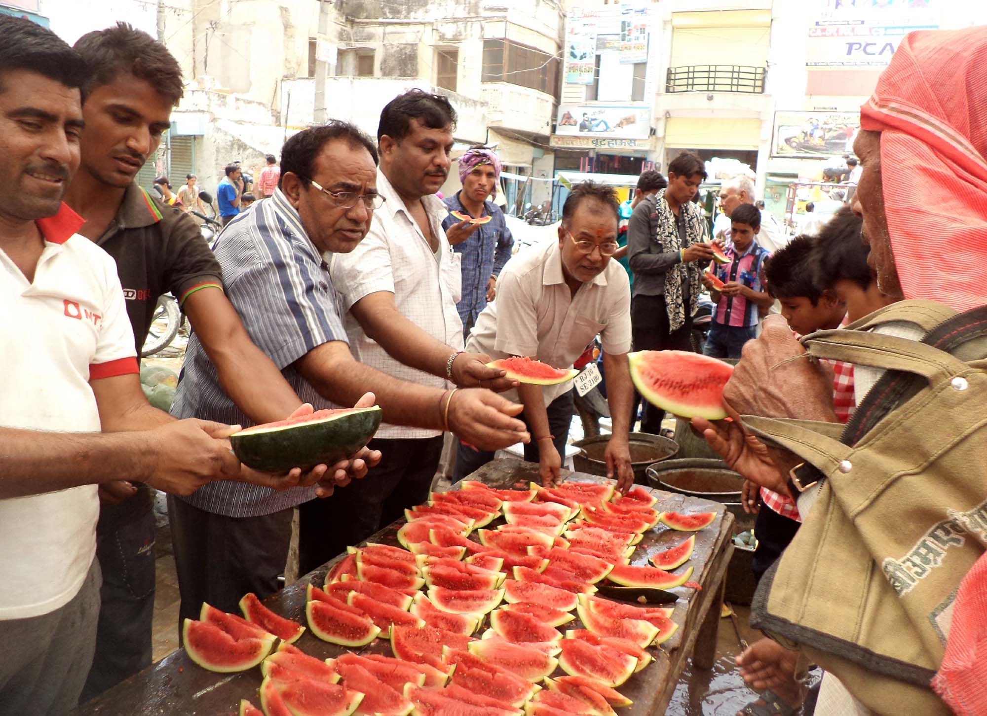 इसी प्रकार गांधी चौक में व्यापारियों ने राहगीरों को तरबूज खिलाये तथा शरबत पिलाया। इस पुण्य कार्य में मुरलीधर सिंधी, दीनदयाल नाई, बाबू खां, बाबू सेठ, किशोर सिंधी, गोविन्द सहित अनेक लोग जुटे हुए थे। कस्बे में विवेकानन्द मार्केट, राठी हॉस्पीटल के सामने, अगुणा बाजार सहित अनेक स्थानों पर राहगीरों को ठण्डा शरबत पिलाकर पुण्य लाभ कमाया गया। वहीं दूसरी ओर घरों में महिलाओं ने अनेक पुण्य कार्य किये। शीतल जल की मटकियों सहित फलों का वितरण कर पुण्य लाभ कमाया।