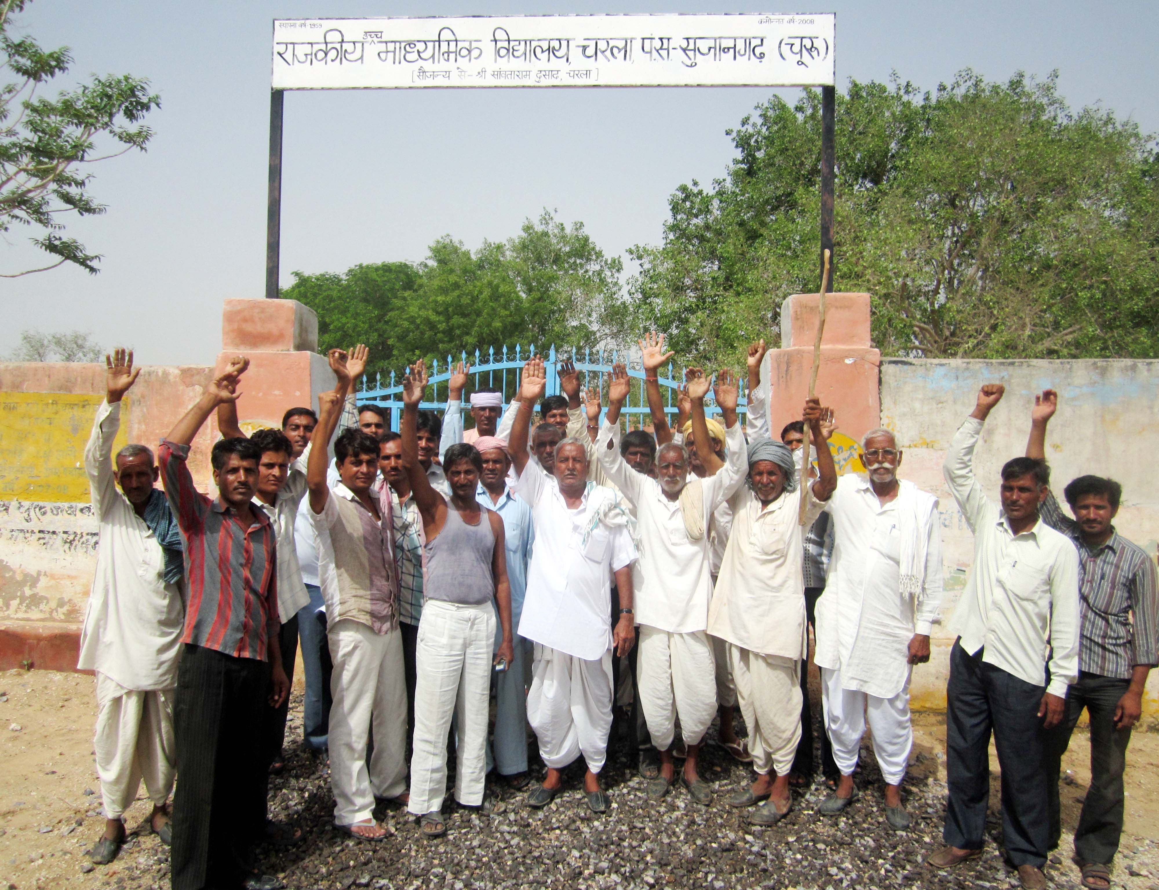 सुजानगढ तहसील के ग्राम चरला के राजकीय उच्च माध्यमिक विधालय में अध्यापकों के रिक्त पदों व कक्षा कक्ष के कमरों के अभाव सें विधार्थीयों को हो रही परेशानियों से आक्रोशित ग्रामीणों ने सुबह 8 बजे विद्यालय परिसर के आगे एकत्रित होकर शिक्षा विभाग व सरकार के खिलाफ जमकर नारे लगाए। करीब 9 बजे प्रधानाचार्य राकेश रांकावत ने ग्रामीणों सें वार्ता कर इस सम्बन्ध में उच्चाधिकारीयों सें मौके पर ही बातचीत की व जल्द ही व्यवस्था में सुधार करवाने का आश्वासन दिया तो ग्रामीण मान गए। इस दौरान धर्मपाल गोदारा , लिछमणराम मेघवाल , मनसुख गोदारा, शेराराम मेघवाल , धर्माराम नायक , मोडुराम जाट , भंवरलाल प्रजापत , सांवताराम मेघवाल , कुलदीप मेघवाल , आमाराम प्रजापत , दीपाराम सेरड़ीया आदी मौजुद थे ।