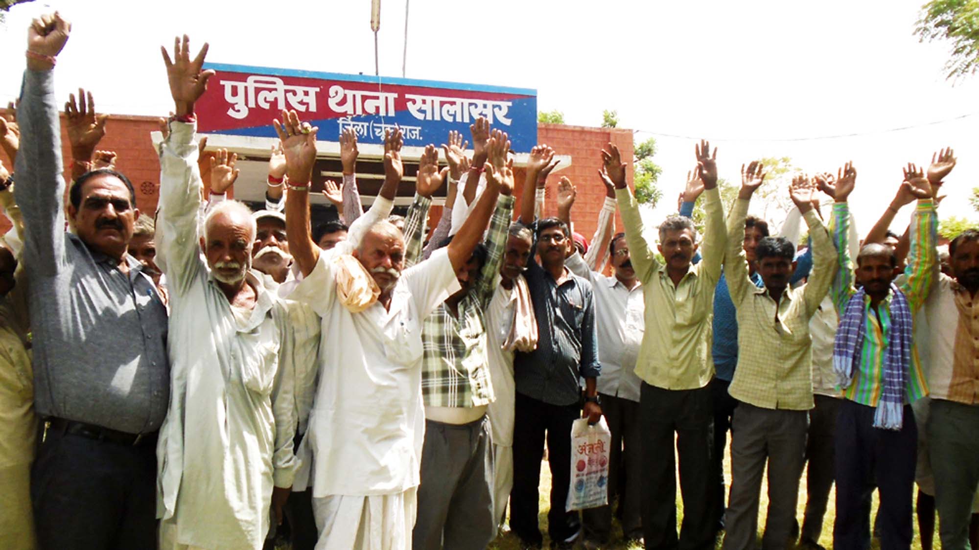 lkyklj Fkkus ds lkeus izn'kZu djrs jkft;klj ehBk ds xzkeh.kA